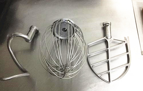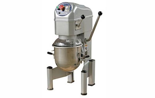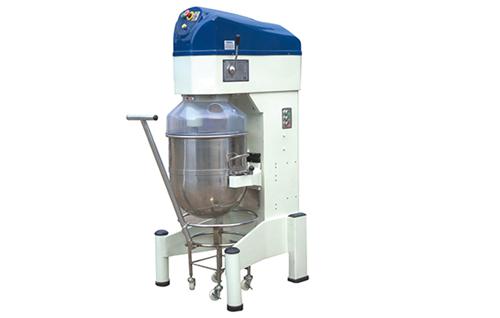 行星式搅拌机(又称立式搅拌机),在搅拌桶保持固定的情况下,搅拌器沿桶壁高速旋转,使物料相互间充分接触,实现混合、乳化、充气及排除部分水分的作用。该设备配备三种可互换的搅拌器。 搅蛋器:适合黄油和鸡蛋搅拌。螺旋形搅拌器:适合面团搅拌。 拍状搅拌器:适用于填料和原料搅拌。